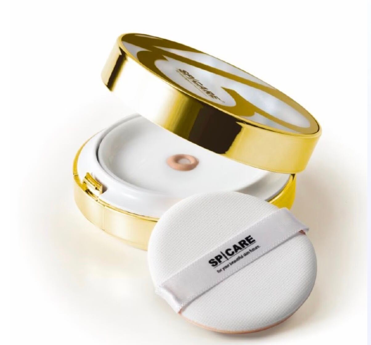 スキンケアの後パフに内容物を適当量を取り、パフでファンデーションを押して肌のキメに沿って軽くたたきながら密着させます。