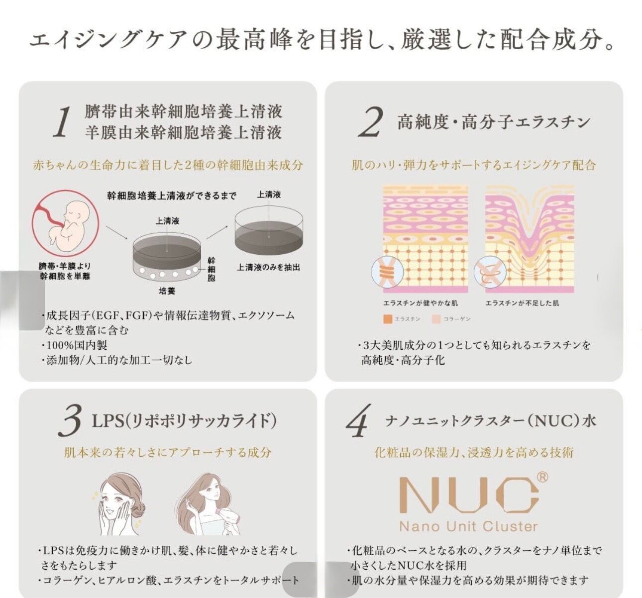 赤ちゃんの生命力に着目し、人工的な加工なしの美容効果の高い成分を贅沢に配合